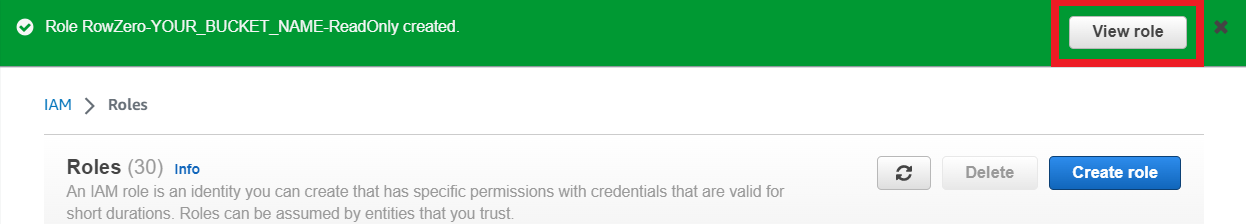 - Give the role a name, like RowZero-myS3bucket-ReadOnly