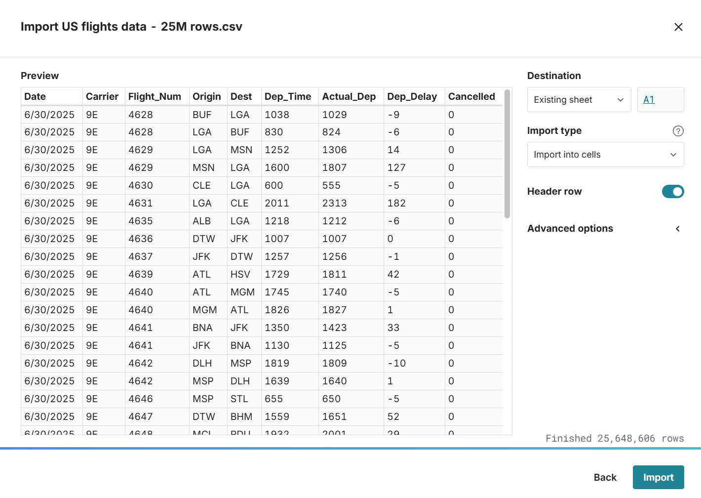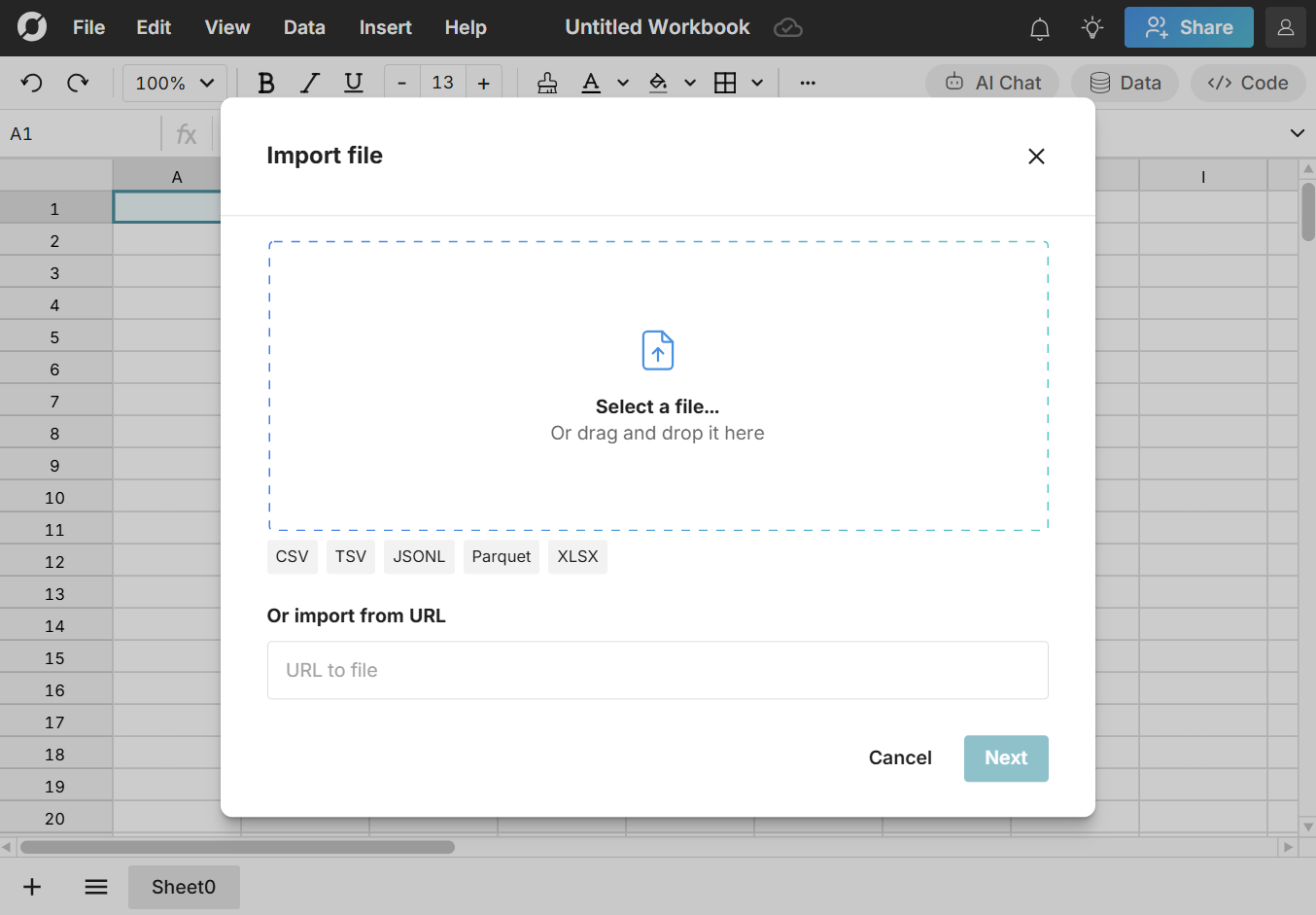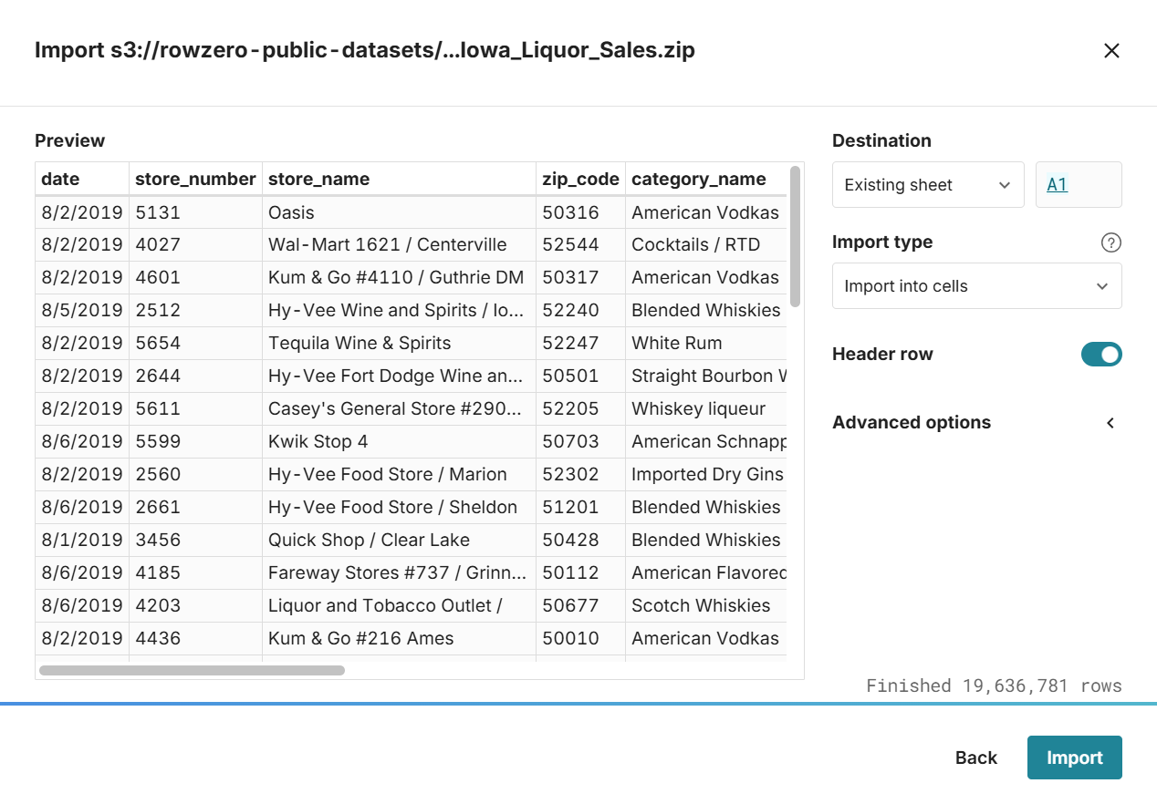 Row Zero lets you preview and clean big files before importing to your data warehouse. Built-in data connectors let you securely write spreadsheet data back to your data warehouse in a few clicks. If your data is in a data warehouse, you can query it directly from your spreadsheet and build connected spreadsheets that auto-update with new data. Built-in connectors include Snowflake, Databricks, Redshift, Oracle, BigQuery, Postgres, Athena, and more.