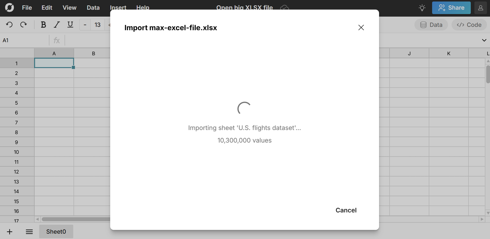 Easily open and edit big files in a spreadsheet. Row Zero works like Excel and Google Sheets, but is built for big data. You can easily open 10s of millions of rows on a free plan and enterprise plans support billion row spreadsheets.