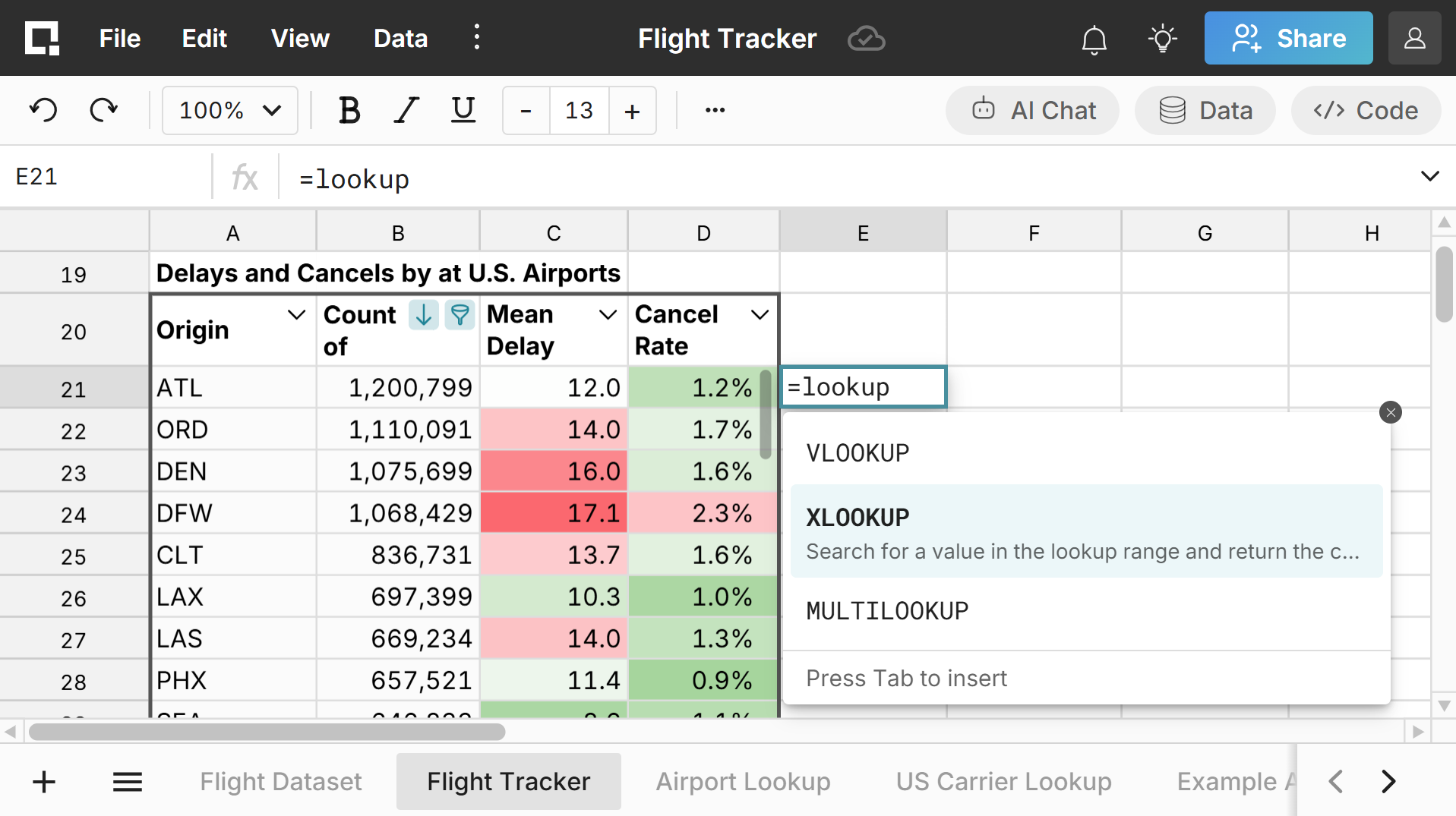 Explore spreadsheet features