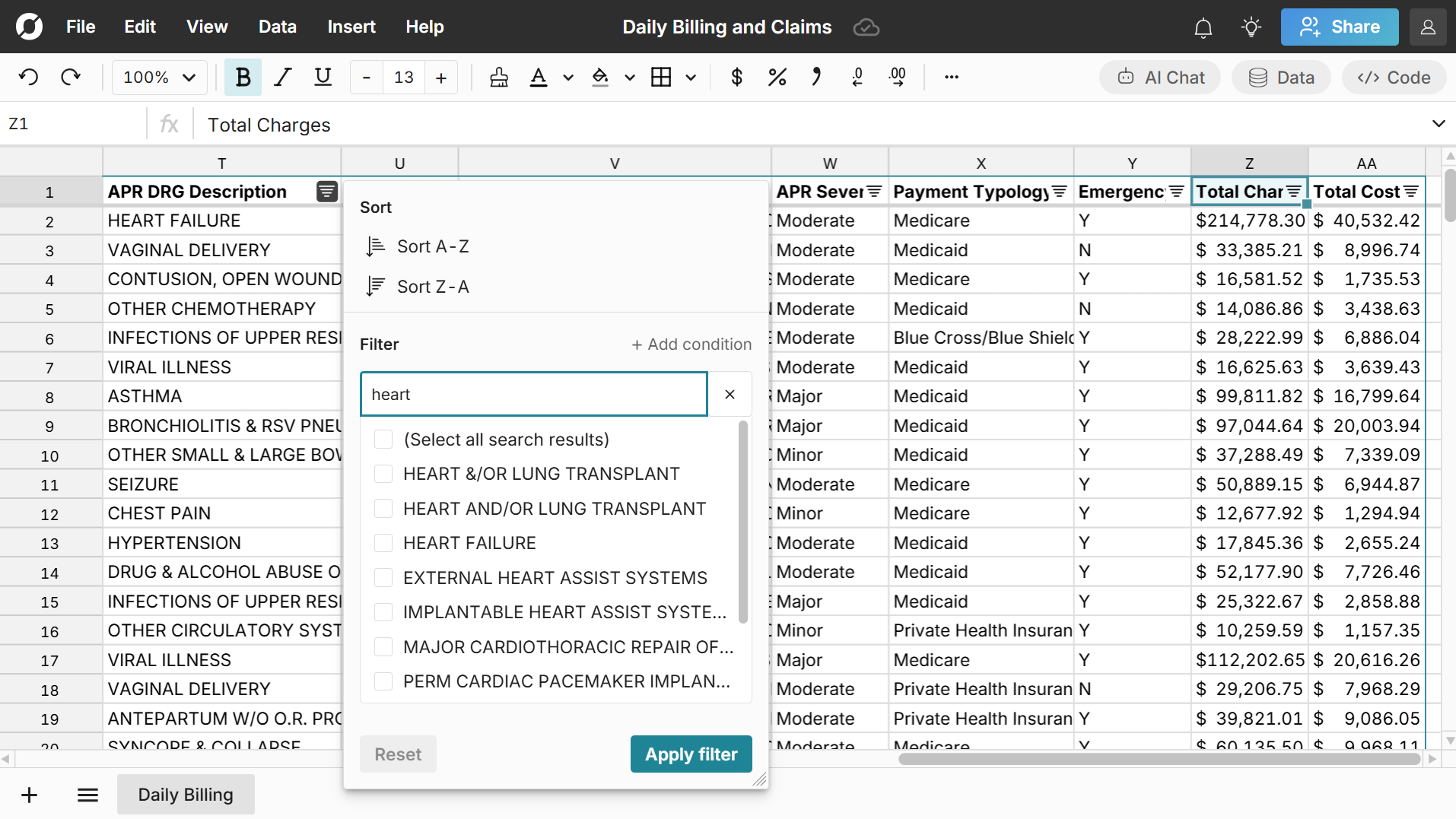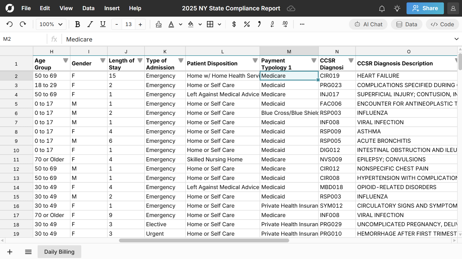 Row Zero is the best spreadsheet for big healthcare data. It works like Excel, but can handle data 1000x bigger than Excel's limits. All teams and skill levels can securely analyze big data with 350+ built-in functions, charts, pivot tables, keyboard shortcuts, etc.