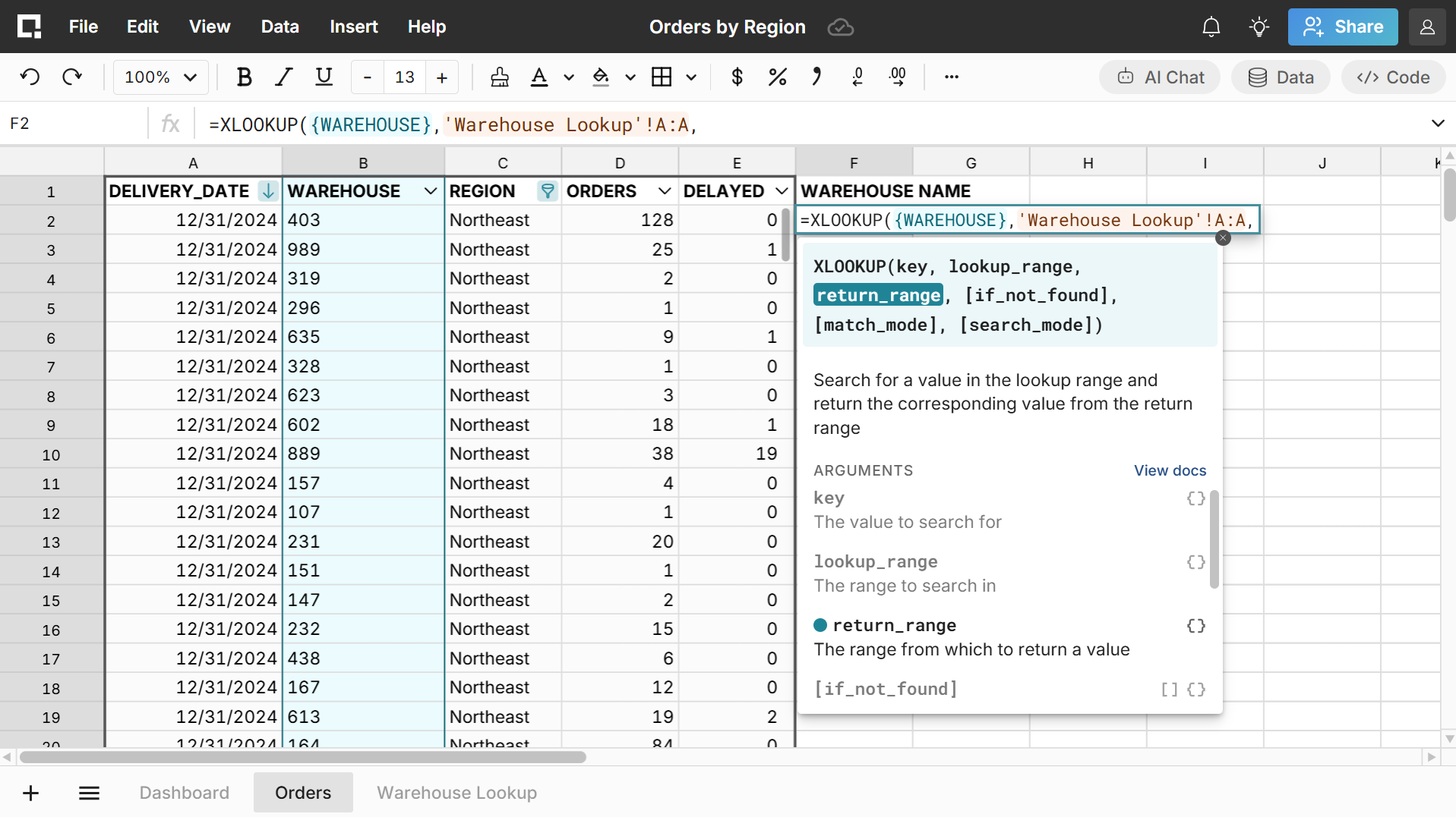 Use the AI spreadsheet assistant to ask questions about your data, and explore trends and anomalies by digging into the raw data. Enterprises can "bring your own key" to connect workbooks to your AWS Bedrock, OpenAI, Anthropic, or Google Gemini account, so the AI runs on your approved corporate infrastructure.